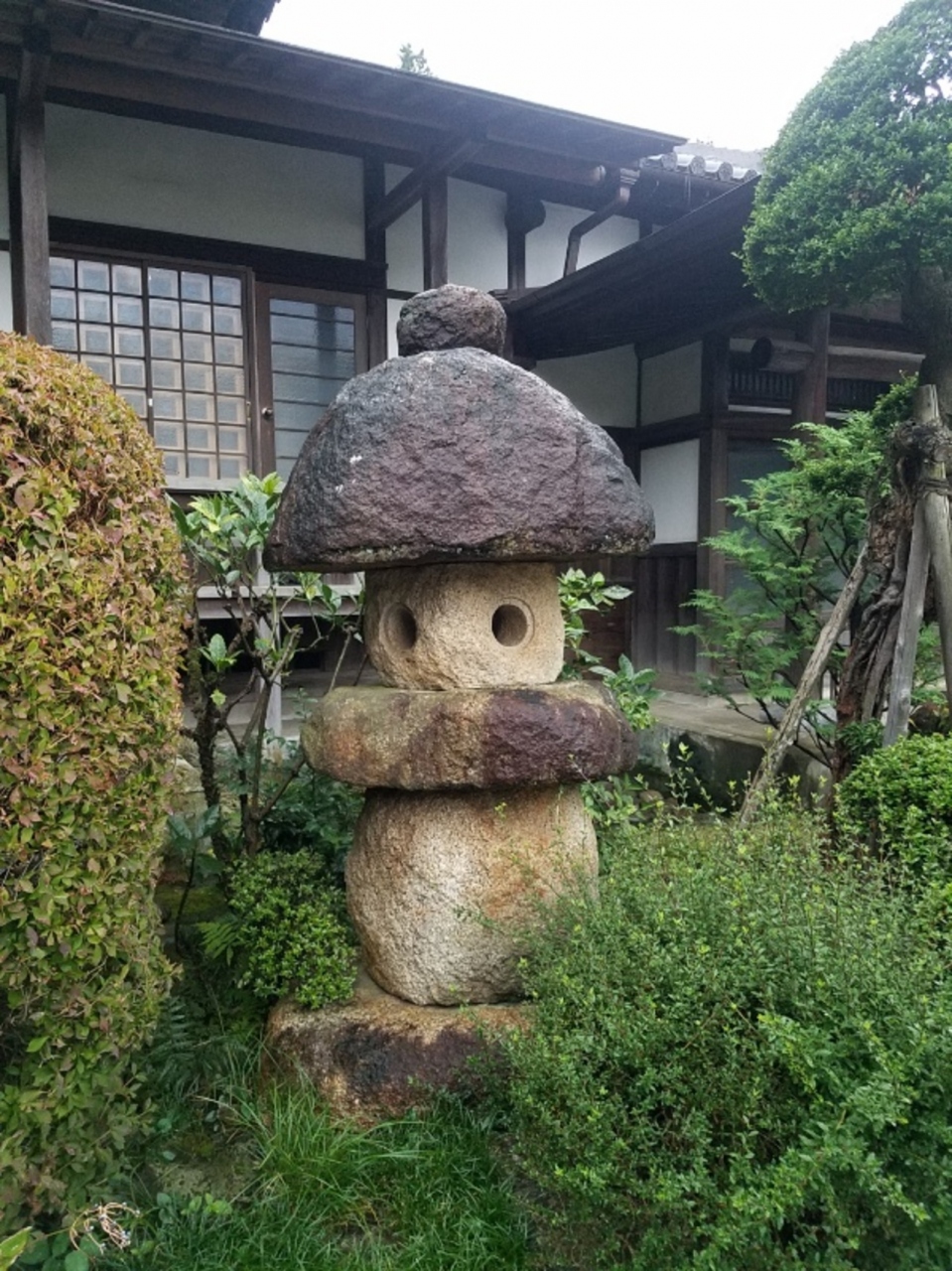安養寺の次に訪れました。ばかうけのようなシルエットの寺号碑が分かりやすい参道を歩いて境内に入ると典型的なお寺さんという感じの本堂で落ち着きます。見回してみると大きなキノコみたいな灯籠があってなかなかの存在感でした。