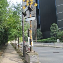 浜離宮恩賜庭園向かいに建つベルサール汐留と銀座郵便局の間に保存されています。1931年から56年間にわたって、汐留駅と築地市場の間を貨物引き込み線の踏切として利用されていました。汐留駅廃止と共に引き込み戦も廃止になりましたが、銀座に残る唯一の信号機だったため保存されたそうです。銀座に残る歴史遺産だと思います。