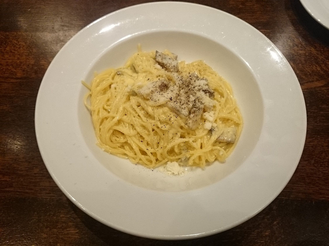 東京メトロ東西線木場駅から約4~5分程度、深川ギャザリアにあるイタリアンレストランです。夕食で濃厚なカルボナーラスパゲッテイをいただきました。ソースは確かに濃厚で、コシのあるパスタとよく絡んでいて、美味しくいただきました。値段がやけに高めだな!と思いましたが、後で調べたらこちらのレストランは丸の内にも支店のある有名店だったのですね。