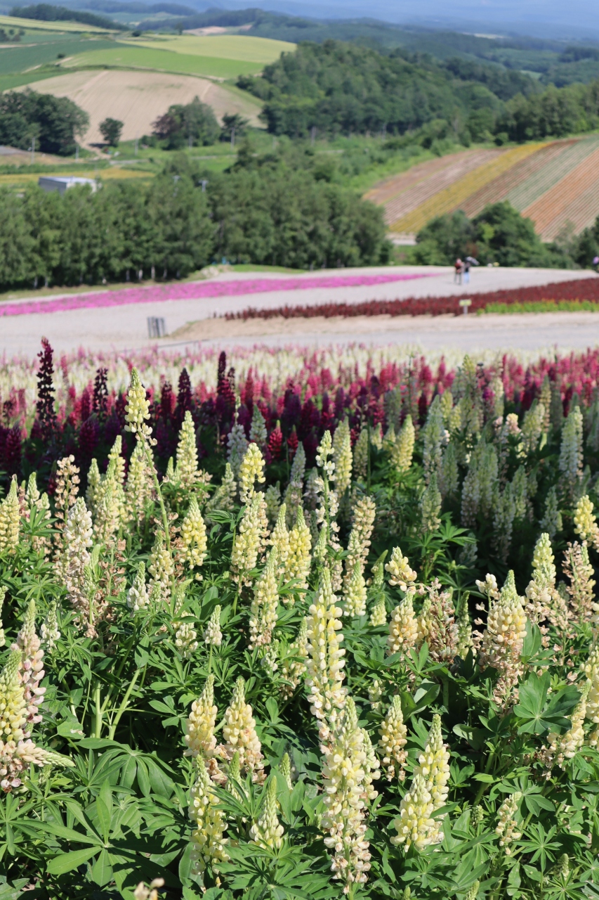 お花畑の向こうに広がる美瑛のパッチワークの丘も、少しですが遠望できましたので、よかったです。まさに北海道の雄大さを感じました。