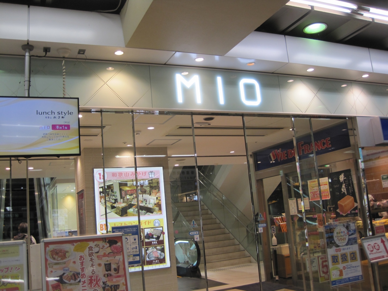 ホームに降りて階段を上って行ったら、入り口がありました。売り場は駅ビルですから、衣料品、ドラッグストア、カフェ、書店と一通り揃っていました。地下1階の飲食店街は広くはなく、1階にも飲食店が入っていました。