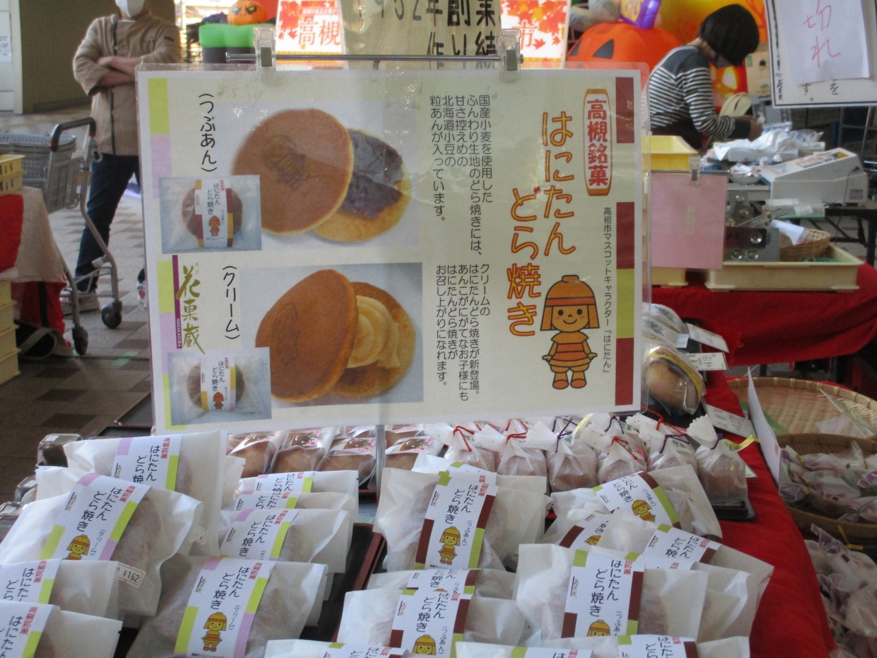 JR高槻駅の北側にあるデッキを左に歩いていくとアルプラザの入り口に着きます。アルプラザはスーパー平和堂や専門店、上には映画館があるショッピングモールです。10月22日に行った時、入り口前で「高槻もんうまいもん市」が開催されていました。ここでイベントをしているの初めて見ました!(たぶん) 野菜、加工食品、お菓子などありました。高槻市のマスコットキャラクター、はにたんの音楽が流れて楽しい雰囲気でした。