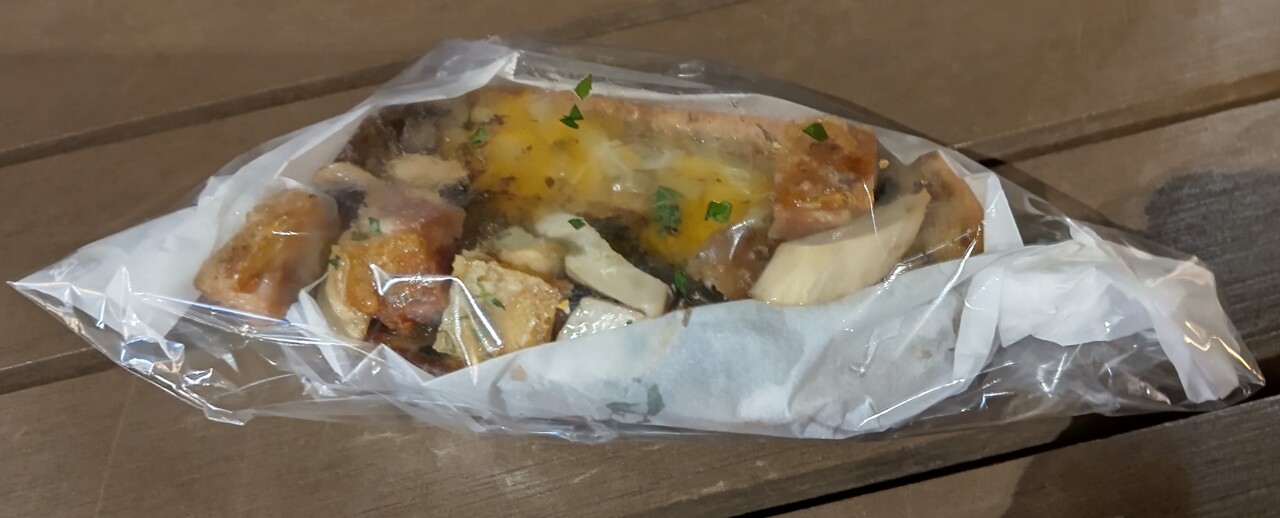 所用の前に、イートインで食べようかと思ってレジに並びましたが、混雑していたこともありレジの進みが遅かったので、テイクアウトして、ビル外のベンチで食べました。
