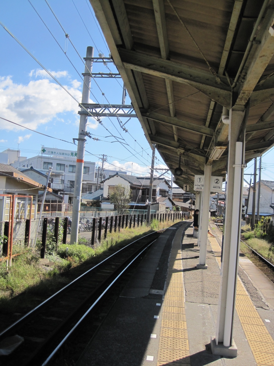 和歌山駅から二つ目の駅、当然無人駅で、ホームから線路を渡り出ました。足場は悪くはありません。先に降りた男女二人組も日前神宮・國懸神宮へ行くかと思ったら、反対方向へ行ってしまいました。
