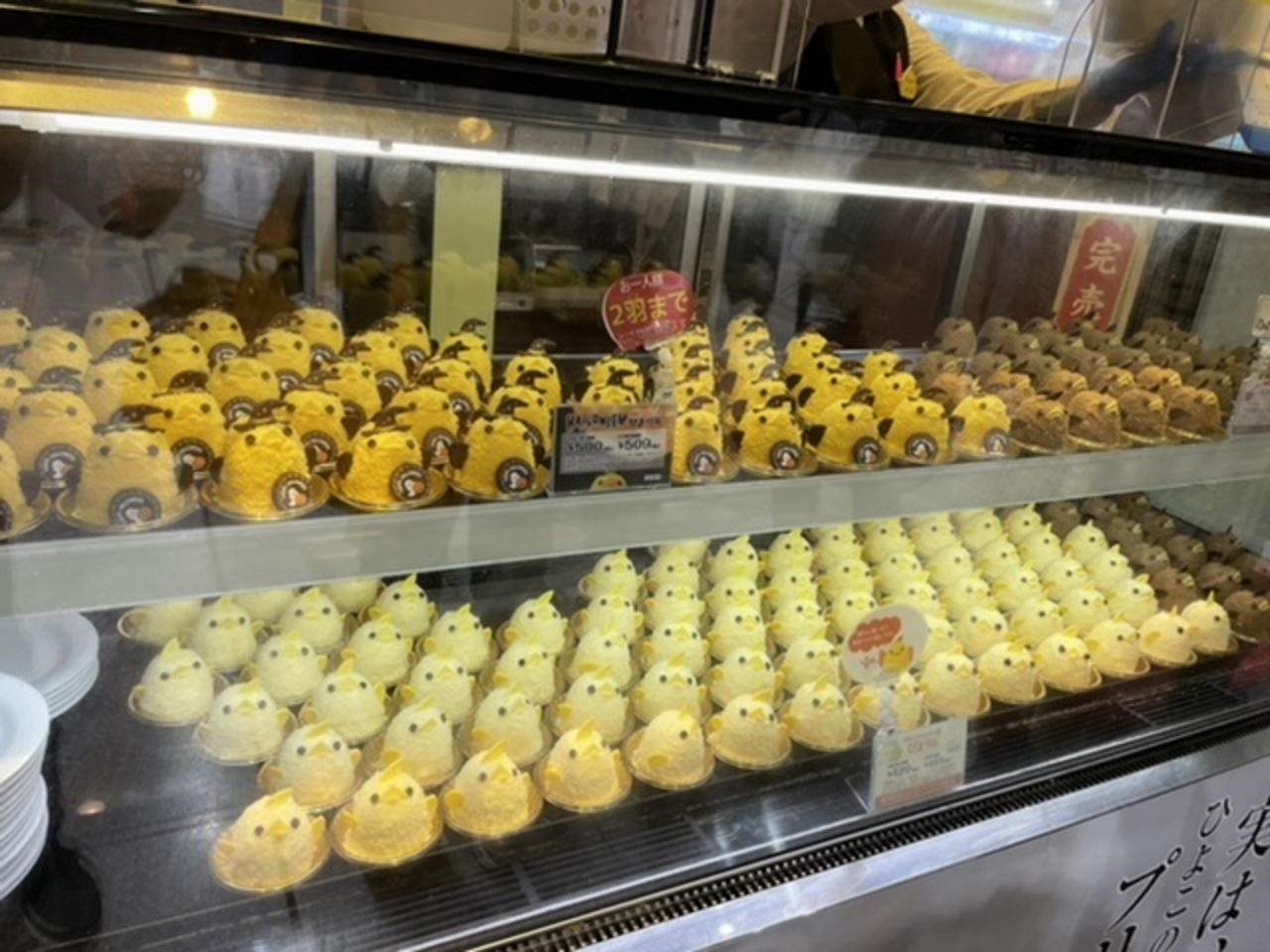 藤井竜王で更に有名になりました"ぴよりん"平日でしたが、10時前から7人ほど並んでいました。期間限定はハロウィンかぼちゃぴよりんでした。たくさん並んでいるととても可愛いです。テイクアウトをし近くの飲食できる施設でいただきました。思ったより小さい。プリンとババロアでできていると言うことでふわふわでおいしかったです。持ち運びが大変と言うことでぴよりんチャレンジの有名ですね。