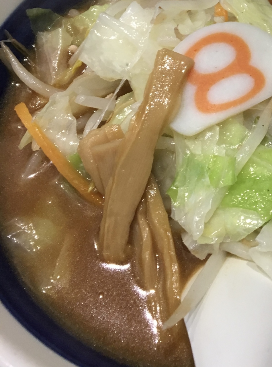 野菜たっぷりのラーメンはちゃんぽん屋さんくらいだと思っていたので、ちゃんと野菜が取れるので嬉しい。メンマが長くてコリコリしていてメンマ好きにはたまらなかったです。