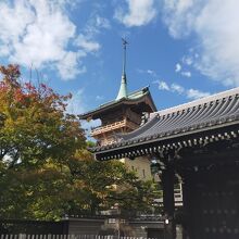 八坂神社から清水寺に行く途中、振り返れば祇園閣がそびえ立っています。山鉾を思わせるような姿で、鉾の先端には鶴がいます。動いても不思議じゃない感じがします。この祇園閣は銅閣とも呼ばれていて、銅板葺きの屋根になっています。普段は非公開で、春や秋の特別公開には入場できますが、写真撮影は内部や風景含め一切禁止となっているので、外からの写真しかありません。以前公開時に行きましたが、内部は壁画や石像など、面白い構造になっていましたよ。