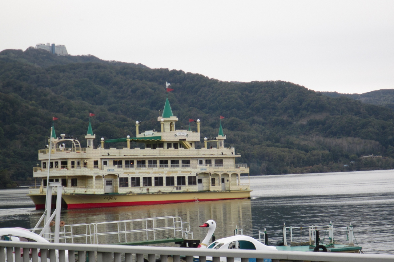洞爺湖散策中、マリオのお城のような立派な船が近づいてきました