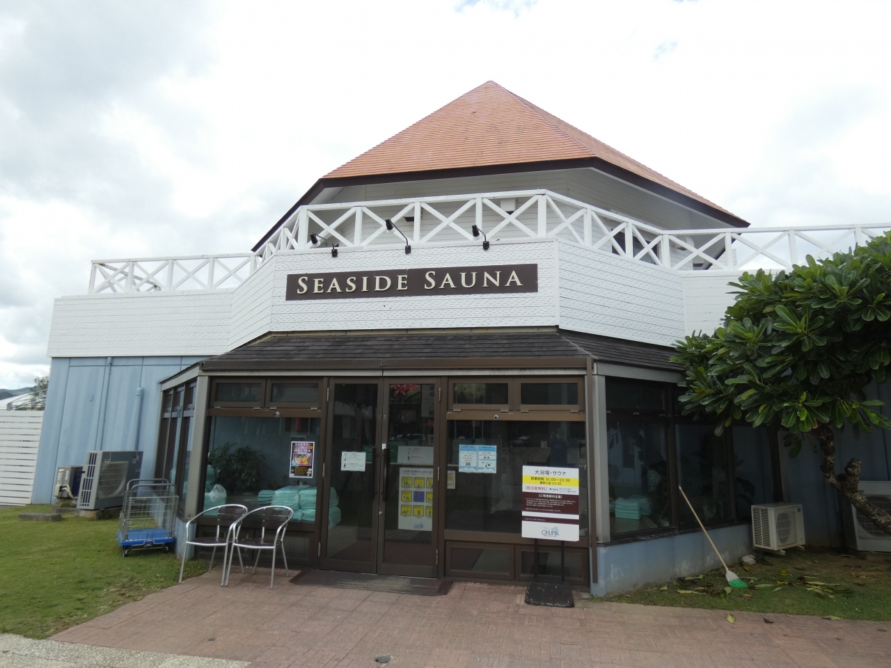 オクマプライベートビーチ&リゾートの屋外プールとオクマビーチの間にあるサウナ風呂。2階に浴槽とサウナがあり、浴槽からオクマビーチに沈む美しい夕日が眺められます。1日の終わりを楽しめるサウナです。中温のサウナで体にも良いかもしれません。