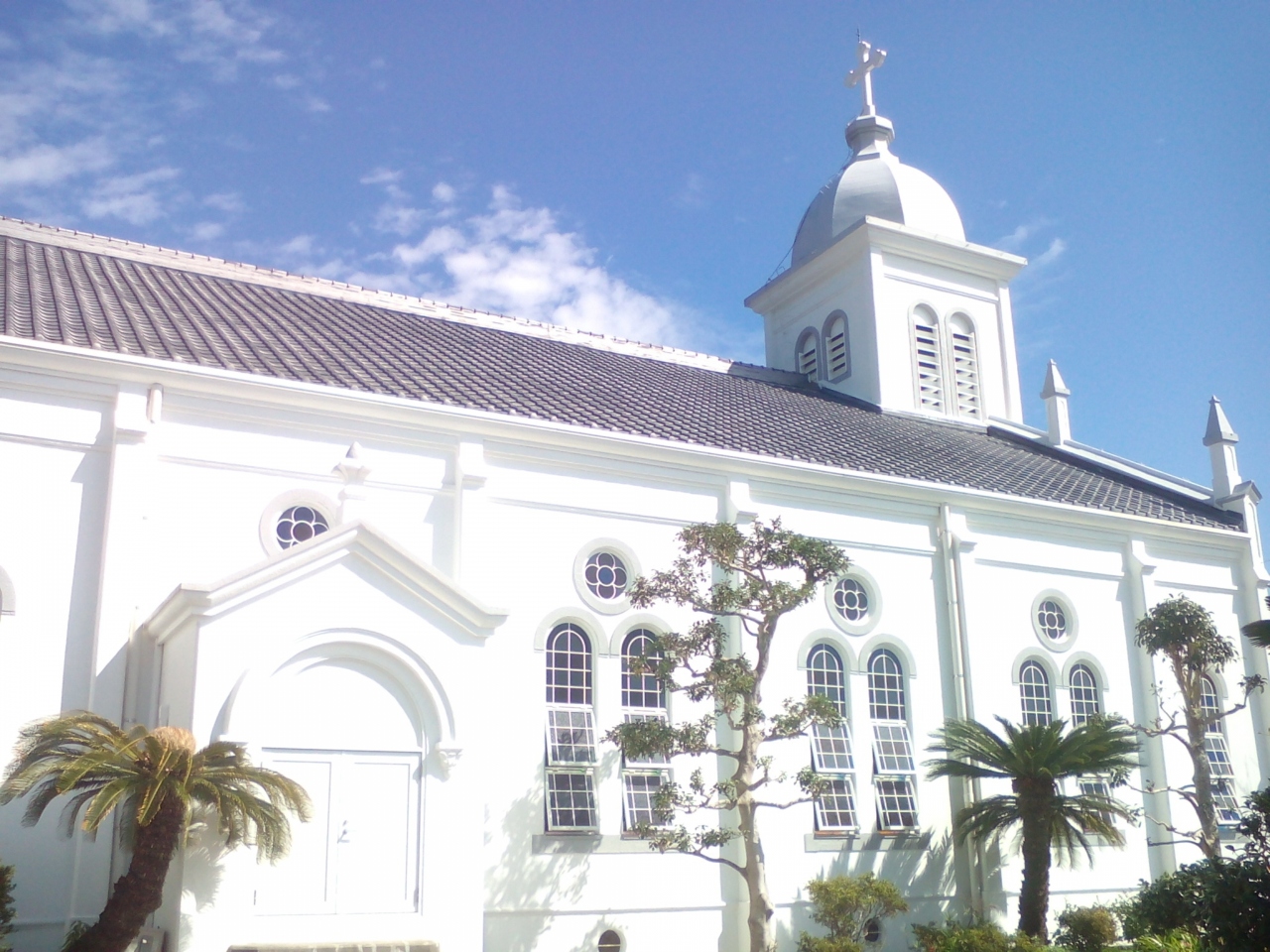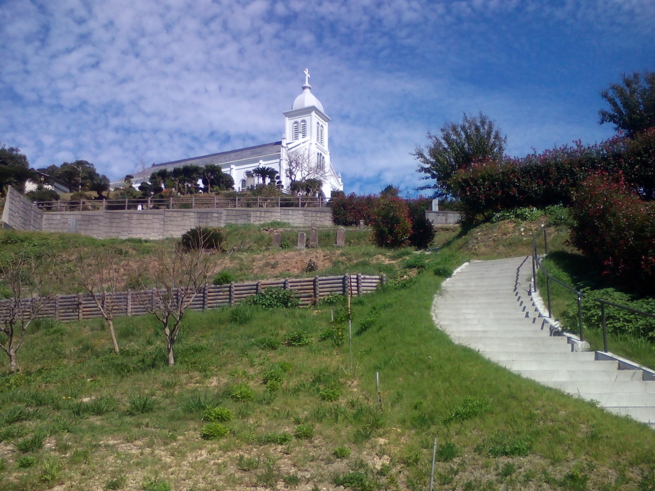 天主堂内は撮影禁止のため写真はありませんが、あまり期待していなかった分とても気に入りました。明るい配色の天井や祭壇左側の像がちょんまげ姿だったり、バックに地獄絵が掲げられていたり、無人の空間で10分以上座って休憩しました。