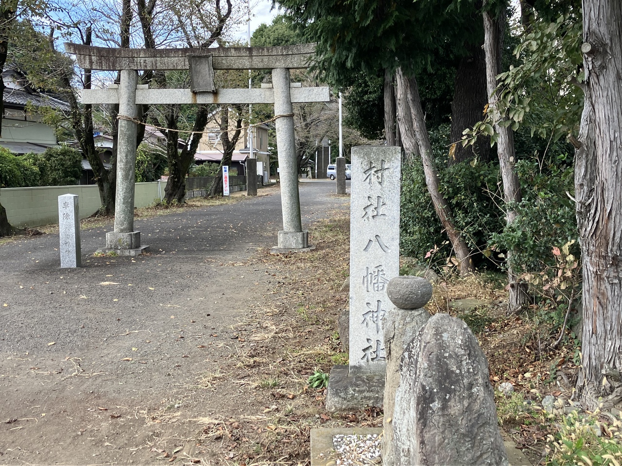 小田急線「本厚木駅」から神奈中バスで「睦合北公民館前」下車しすぐです。1192年、源頼朝の側近、安達九郎盛長が鎌倉鶴岡八幡宮を勧請し再建したといわれています。三田には安達盛長の屋敷や宝篋印塔もあったとのこと。石段の上に立派な社殿が建っています。この社殿は1690年に建立されたもので厚木市では2番目の大きさで市の有形文化財に指定されています。訪問時は秋祭りの準備?らしく町内の方々が集まっておられました。