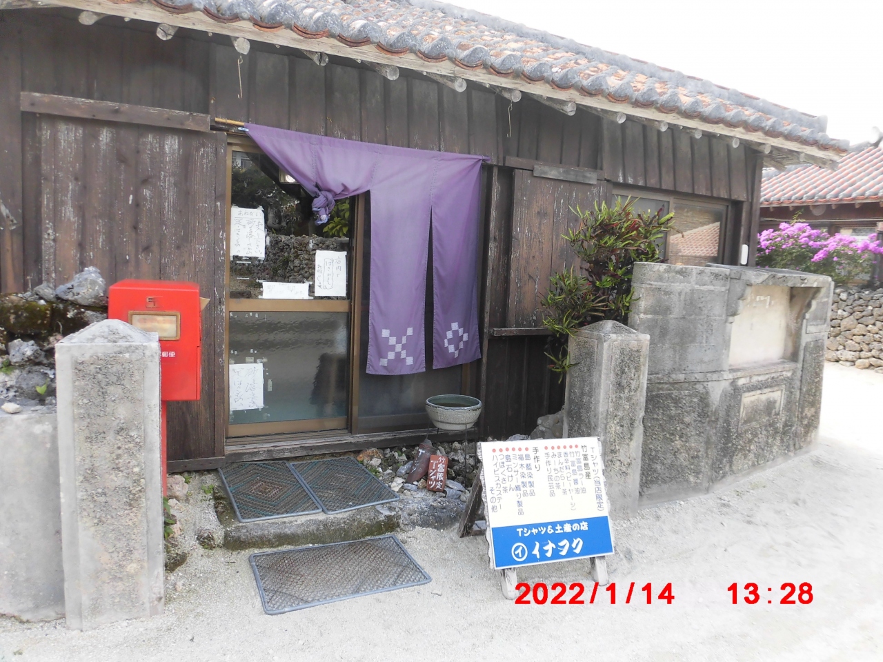 竹富島観光で立ち寄りました。イナフクさんは、「なごみの塔」のある赤山公園の向かいにある小さなお土産屋さんです。土足厳禁で、靴を脱いで上がるようになってました。Tシャツ、民芸品、織物などがあり、オリジナルTシャツなどがありましたが、竹富島(テードゥン)ラー油狙いでした。