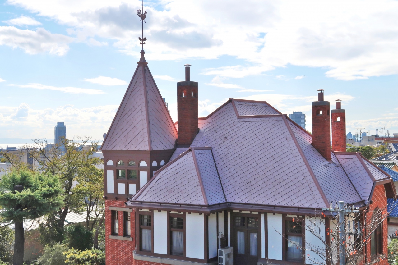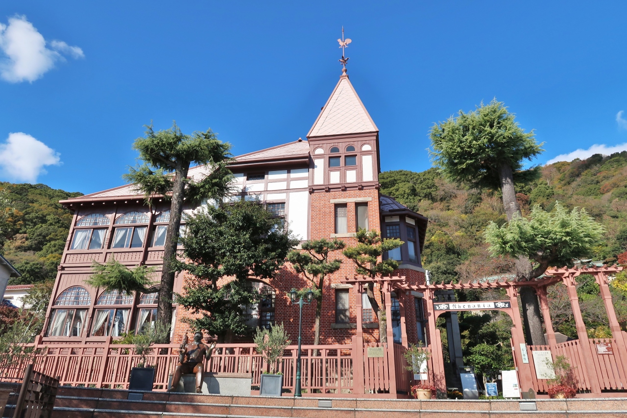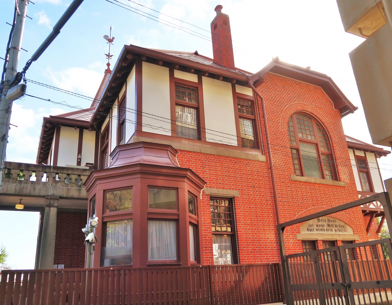 明治42年にドイツ人貿易商のトーマス氏が、ドイツ人建築家に建ててもらった邸宅です。入口門扉に書かれたRhenaniaは、トーマス氏の故郷ライン地方のことで、自邸を「ハウス・レナニア=ラインの館」と呼んでいたそうです。トーマス氏が生きていたら、フランス人の邸宅ドレウェル邸の方が「ラインの館」と呼ばれている現状に、さぞ驚くことでしょう。