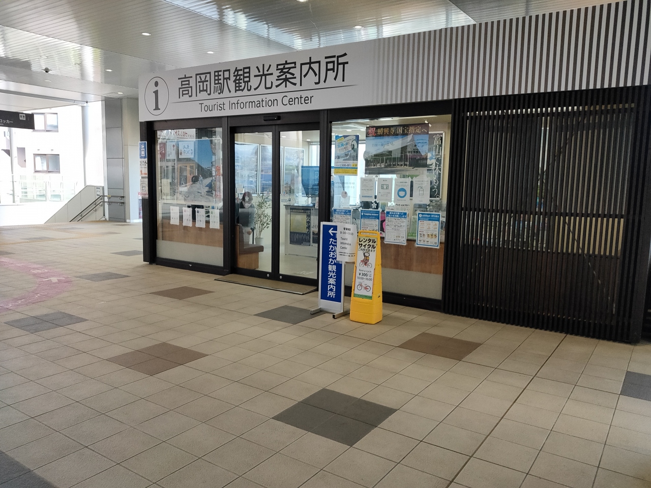 高岡駅観光案内所はJR高岡駅の改札口を出てすぐの場所にあります。観光案内所の始業時間は10時からと遅めで始まります。またそれに合わせてレンタサイクルの貸し出しも10時からとなっていました。高岡の街は観光スポットが高岡駅の南側と北側にあり歩いて回るのは大変なので、レンタサイクルを利用しようと考えていました。午前中の観光を考えていたので利用できませんでした。残念です。