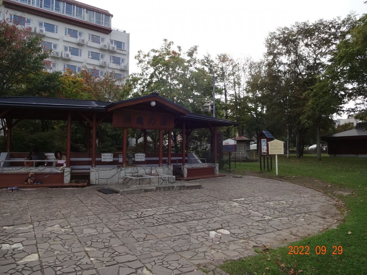 少し視線が高い場所にあるので、洞爺湖を眺めながら足湯が楽しめると思います。この足湯は、平成15年にできた源泉100%の足湯なのだそうです。利用している方もいました。