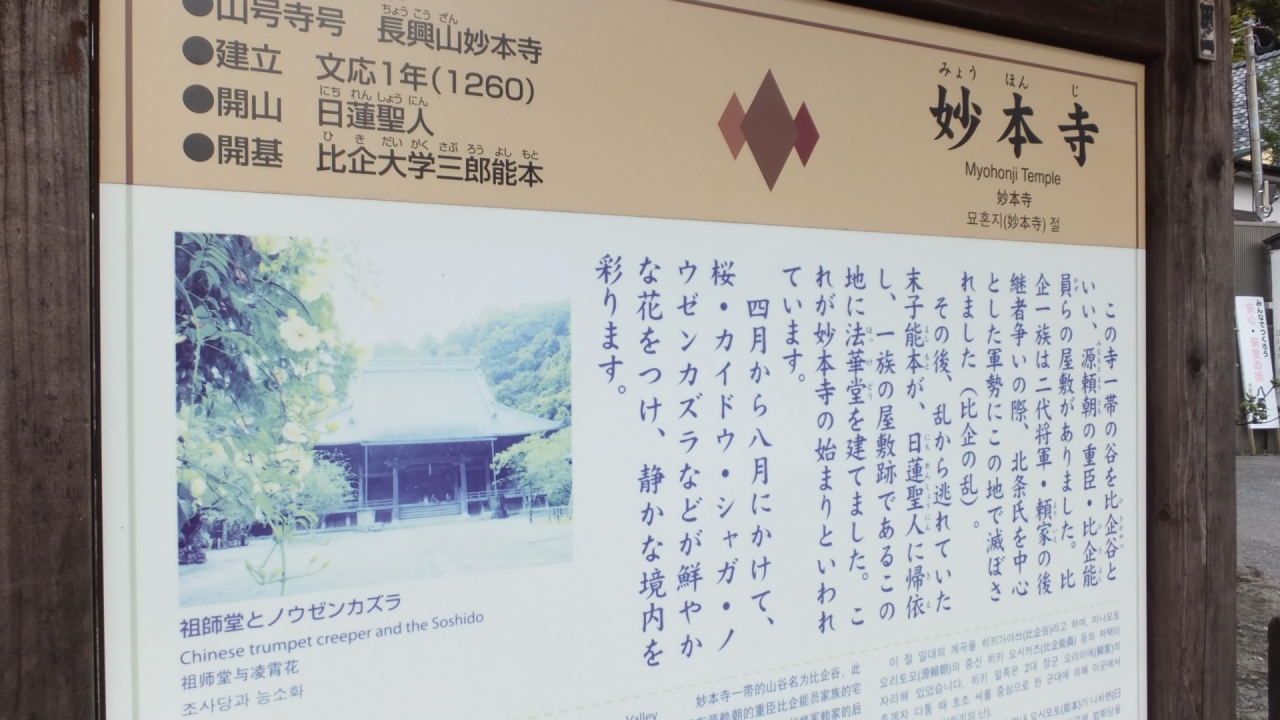 初秋の鎌倉の散策で訪問したお寺の一つです。鎌倉駅から徒歩でアクセスしました。日蓮宗最古の寺院とのこと。大河ドラマで有名な比企の生き残りの方が、もともと屋敷のあった跡にを献上し、その館跡に建っているお寺です。広く素敵なお寺で、木々も多く一部紅葉も始まりかけていました。