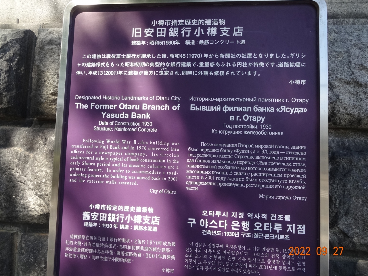 小樽市指定歴史的建造物 No.19になっており、重厚な円柱が印象的です。
