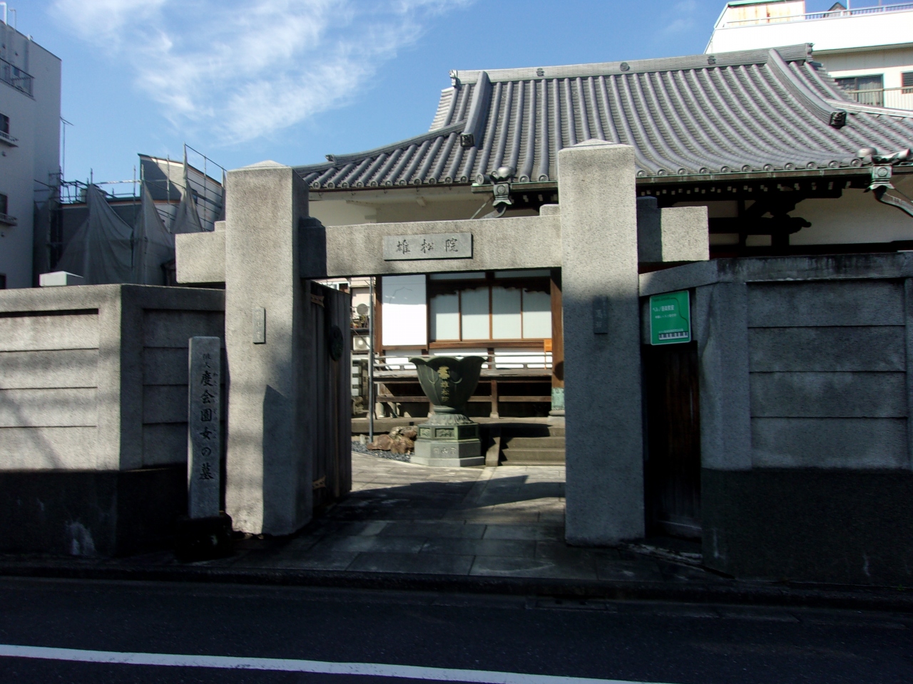 この雄松院は深川の寺町の中にある寺の一つです。地下鉄都営大江戸線清澄白河駅から南に5分程度の場所にあります。この寺は近くの霊厳寺の開山堂として17世紀前半に創建されたといわれています。浄土宗の寺です。俳人の渡会園女は松尾芭蕉の弟子の一人です。山門を入るとすぐに墓があります。