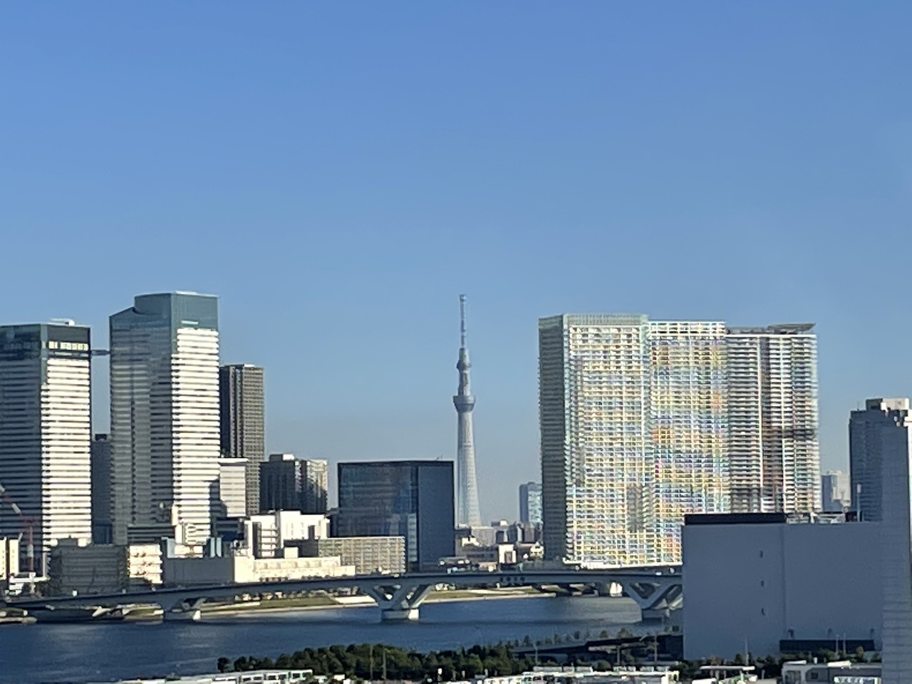 久しぶりに車で通過しました。10月の雲ひとつない秋晴れ、お台場や都内のビル群に目を奪われました。ビルの間からはスカイツリーも見られました。橋はあっという間に通過、橋の途中でとまれないのが、残念でした。