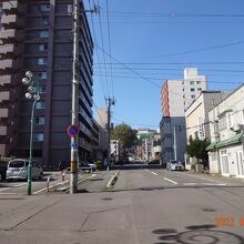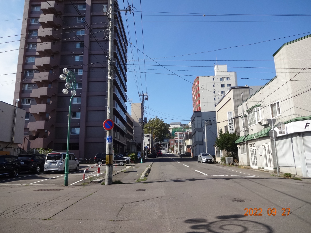 龍宮神社から階段を降りたとき、まっすぐに小樽湾の方向に延びている通りです。