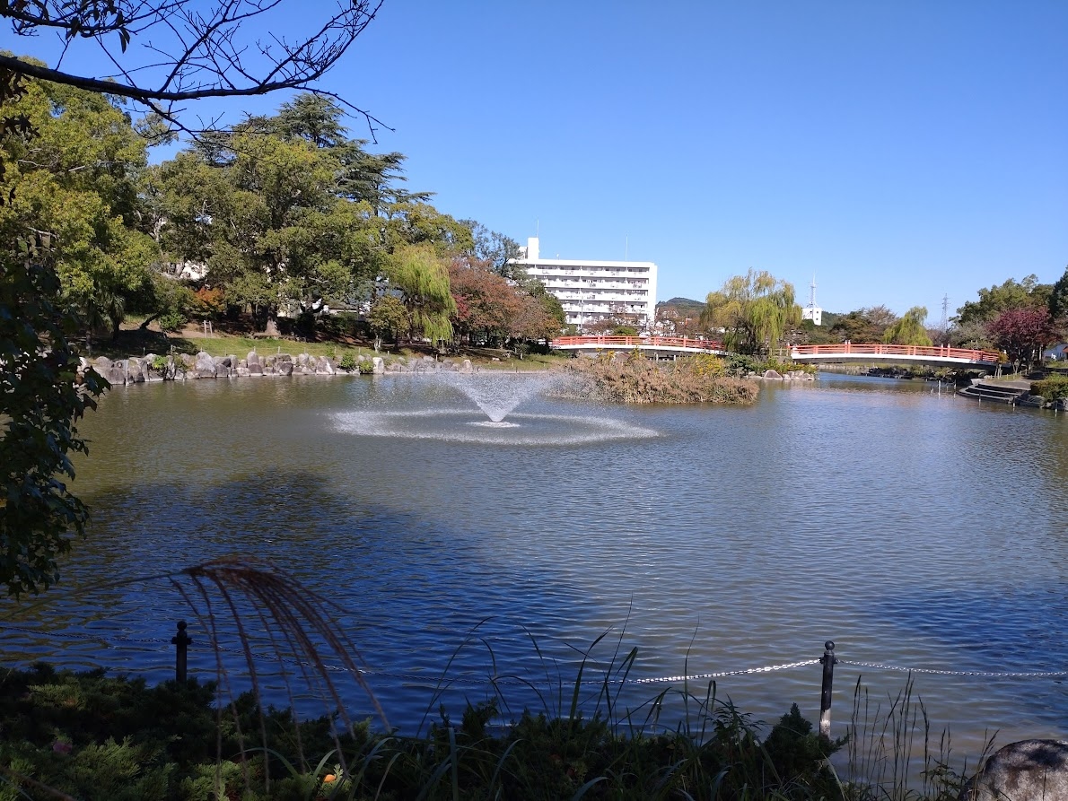 池を囲むように散策路が整備された水と緑の公園です。平日の午前中だったため、訪れる人は少なく閑散としていました。国道200号から近いのですが、公園周辺の道路は狭いです。車で行く場合は南東角の駐車場を目指してください。