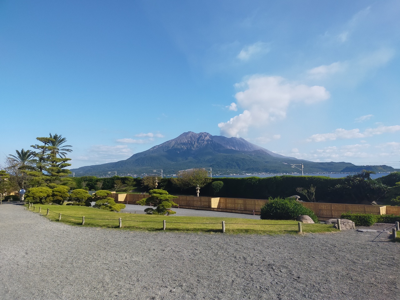 言わずと知れた島津のお屋敷。お庭越しの桜島がとても綺麗