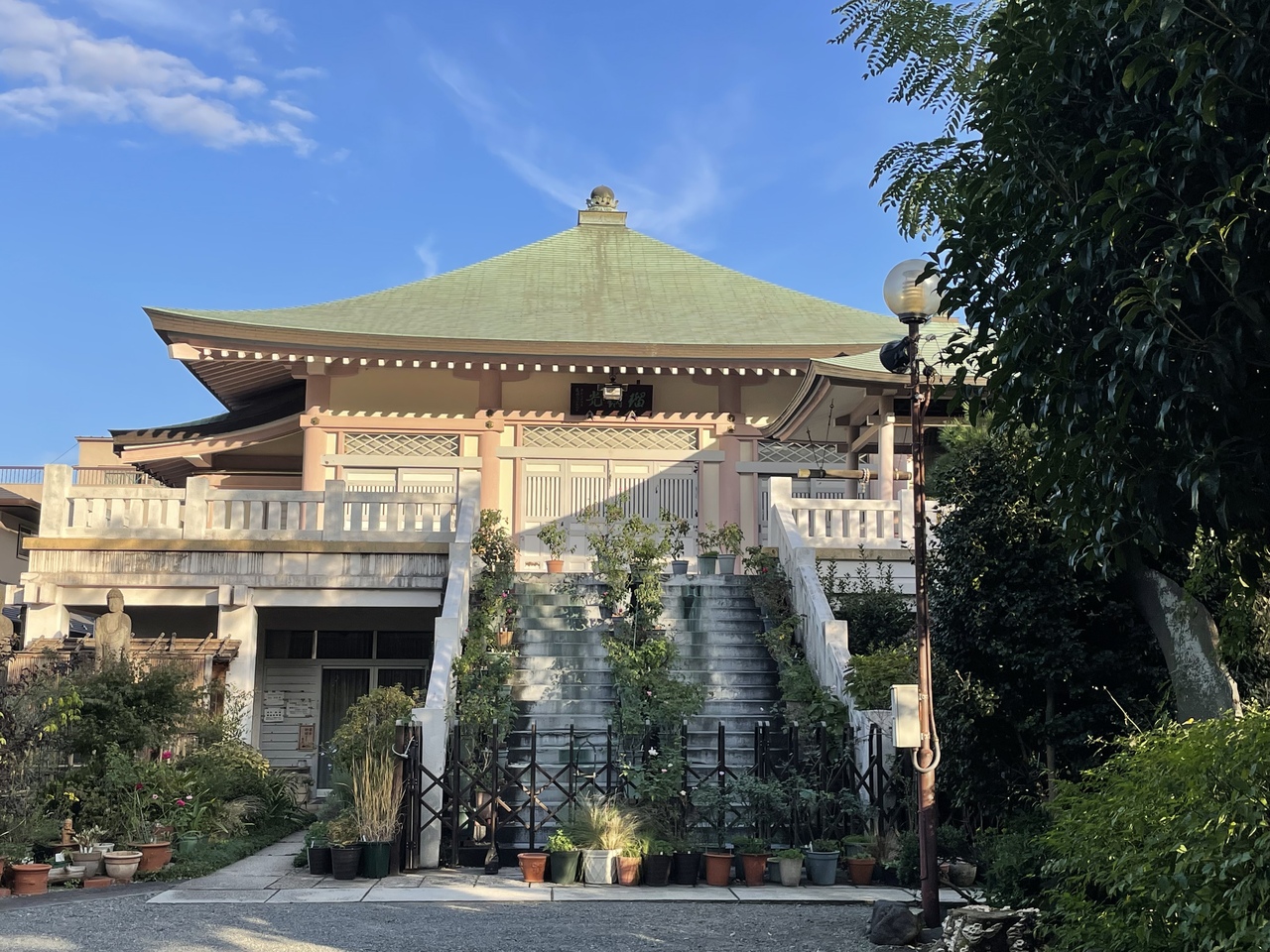 雑司ヶ谷から早稲田を散策する途中で寄りました。豊島区高田にある真言宗豊山派のお寺です。みどりに囲まれた本堂は2階建ての近代的な建物で都会のお寺といった印象です。神田川にかかる面影橋から歩いて数分ほどです。