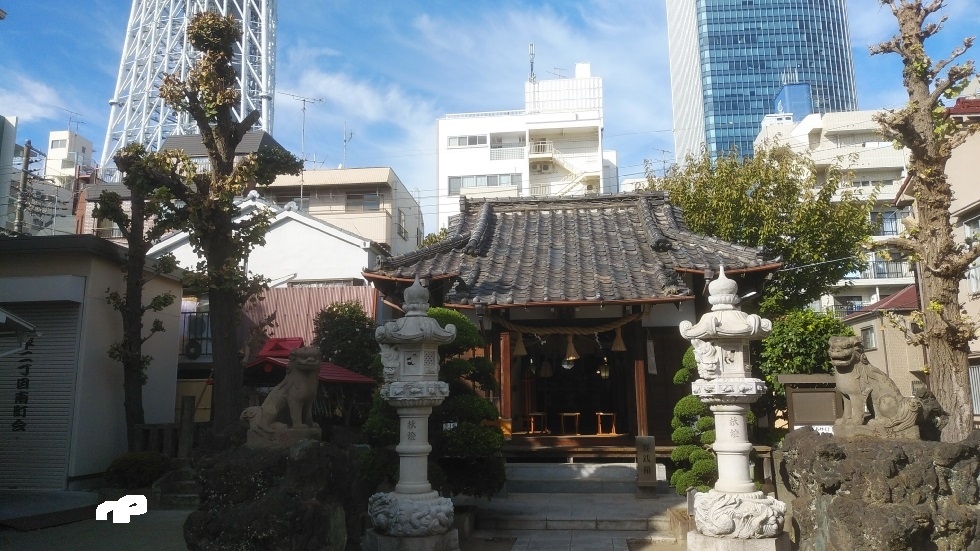 押上駅から徒歩3分くらいのところにある神社。創建年代は不詳だが延元年間(1336年から1340年)にはあったという。
