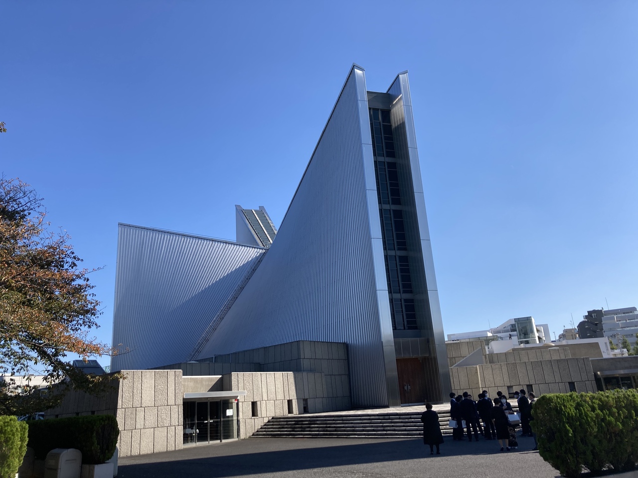 椿山荘のすぐ近くにある特徴的な外観の教会です。日曜日の午後に訪れたら、結婚式が立て続けに予定されていましたが、ちょうど合間の時間帯だったので、運良く教会に入れました。内部は写真撮影禁止でした。外観は巨大な建築物に見えましたが、内部はそれほど広くなく、薄暗さもあって、静けさが漂っていました。