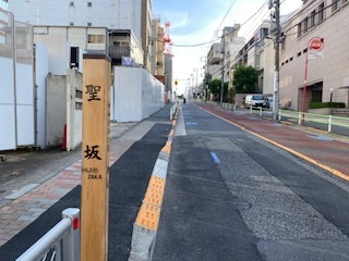 三田の慶応大学近くから高輪台地に向けて緩やかに上っている坂道です。坂道に沿って、その造りが特徴的なクエート大使館や亀塚古墳、伊皿子貝塚遺跡など、割と見てまわるのに面白い坂道です。ちょっと疲れるかもしれませんが、散策してみると面白いと思います。