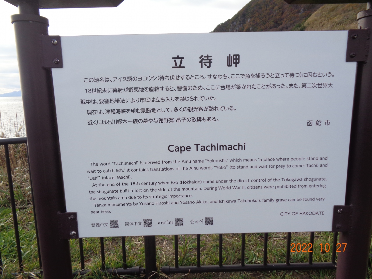 立待岬ではその件は表示板が無く、断崖の上から海を眺めた位で帰りました。