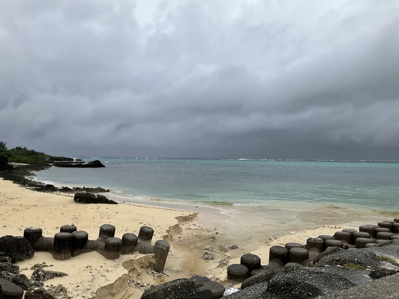 下地島空港から通り池にはツアーコースに入っていますが、その先のここは観光コースには入っていません。しかし、空港横と真下からの飛行機の発着陸は見応えがあります。先端までは車は行けませんので5分ほど歩かなくてはいけません。車止めの手前に10台ほど停めれる駐車場?のようなスペースがあります。今まで2回訪問しましたが、満車になった事はありません。そこの海も砂浜になっておりコバルトブルーで海水浴が出来そうです。但し、公認の海水浴場では無いでしょうから、充分注意して泳いでください。また、時間が合えば横から飛行機の離着陸が見れます。子どもさんは喜ぶでしょう。
