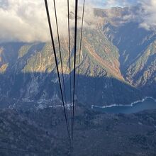 大観峰から黒部平まで移動する時に利用しました。大観峰から黒部平までの間には支柱がないロープウェイでした。秋には、ロープウェイから大観峰の山肌の紅葉が見られるのですが、19月末は、すべて歯が落ちた枯れ木でした。