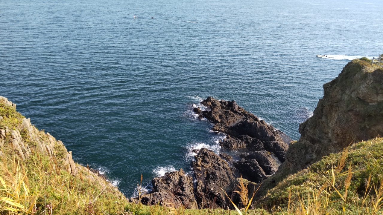 赤と白のストライプ手前のカラーリングがなかなか映えましたが、それよりも灯台直近、その水族館より、東(小樽)寄りにそれぞれ展望スペースが設けてあり、そこからは綺麗なブルーの日本海、磯場、水族館などの景色が見えてなかなか絶景でした。