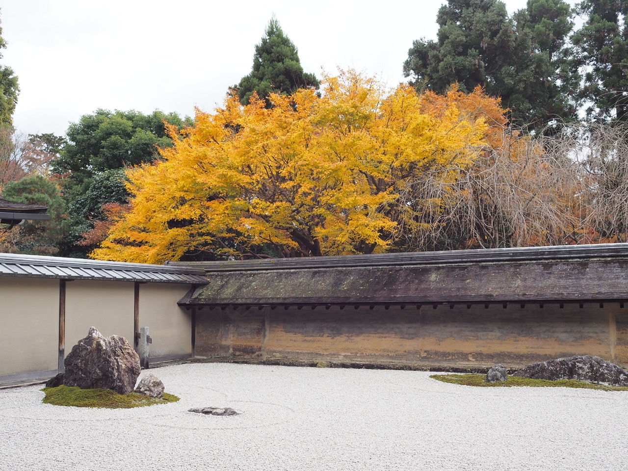 12月5日に行きました。京都中で落葉が進む中、色々訪問した中で龍安寺が一番綺麗に残ってました。ガイドさんが「今京都で一番紅葉が綺麗なのはここです」と説明する声が聞こえてきましたがその通りなのではと思います。