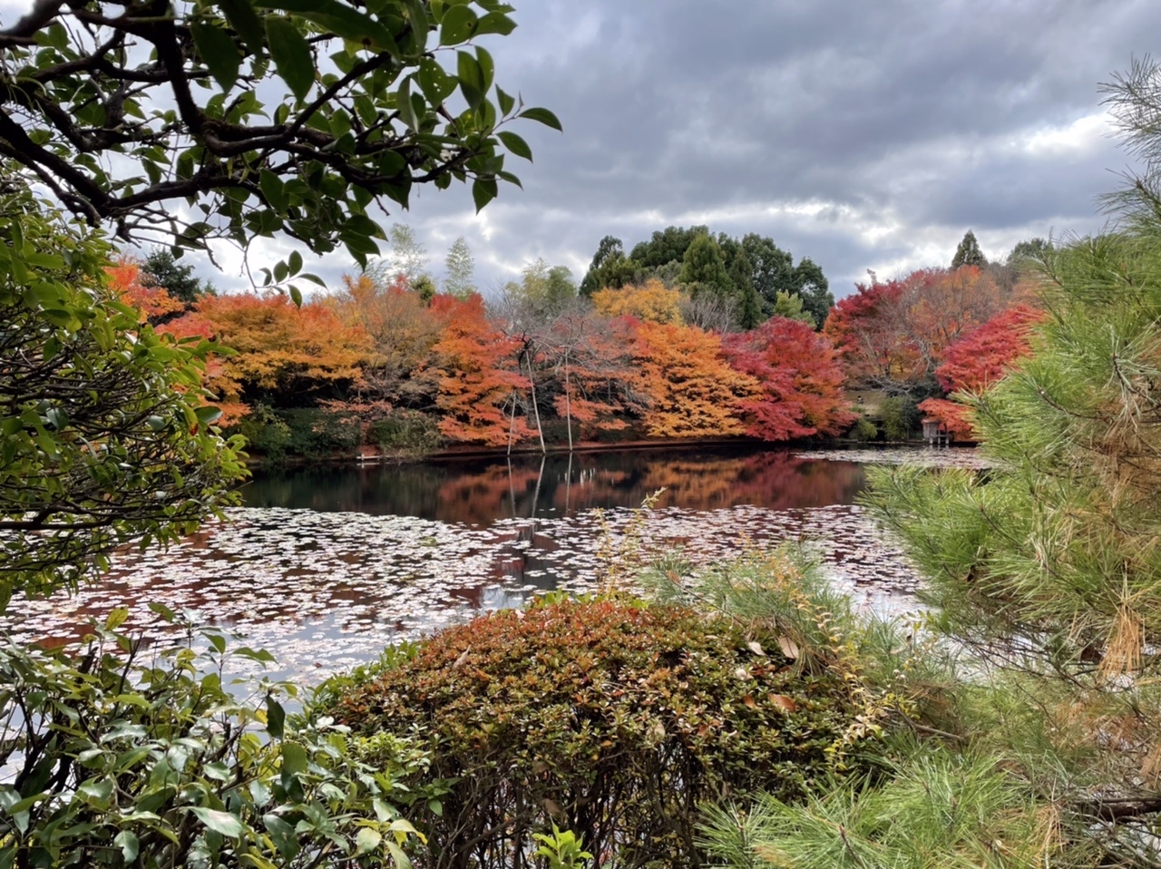 方丈庭園の周りは葉が落ちている木が多かったですが、池の周り等、まだ紅葉が綺麗に残っている範囲が広かったです。