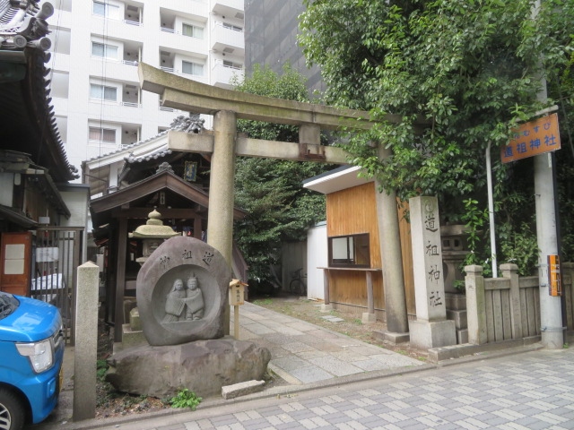 こちらは、豊臣秀吉がこの地に移したとされる秀吉ゆかりの神社で、なぜか縁結びの神様です。鳥居の右側に夫婦らしき2人が寄り添っている何とも可愛らしい石碑があります。手に手を取って、仲睦まじい石像で、縁結びの神社にふさわしいですね。
