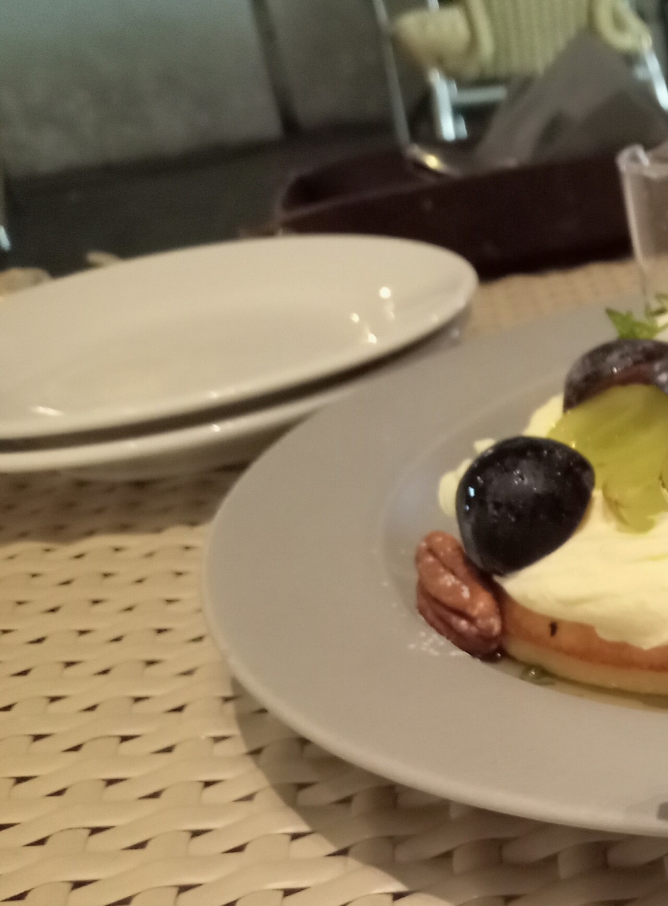 並んでいましたが、そんなに待つことなく入れ、しかもソファのゆったりしたテラス席でした。パンケーキはあまりメレンゲっぽいタイプじゃない感じのもので、クリームとか練乳(?)ソースはおいしかったです。自家製ジンジャーエールも良かったです。
