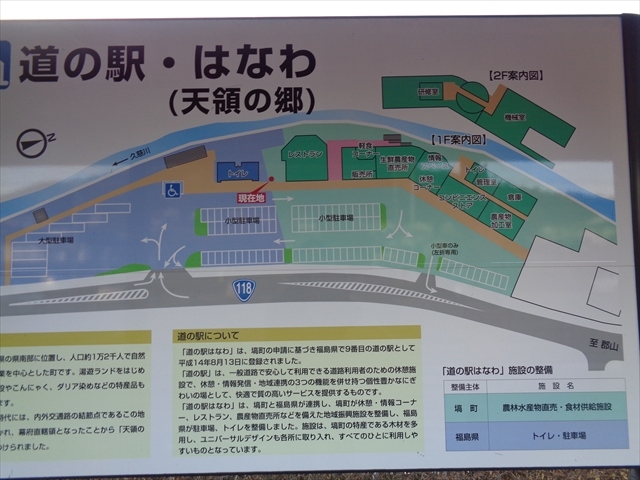 福島県の南部にある道の駅です.トイレは障害者も利用できるように配慮されていました.農産物直売所,土産物売り場の他レストランもあります.駐車場は100台分くらいありました.塙町は江戸時代に江戸幕府の直轄領であり,明治になってからは天皇の土地として,天領と呼ばれたことから,天領の郷という名前が付いたそうです.