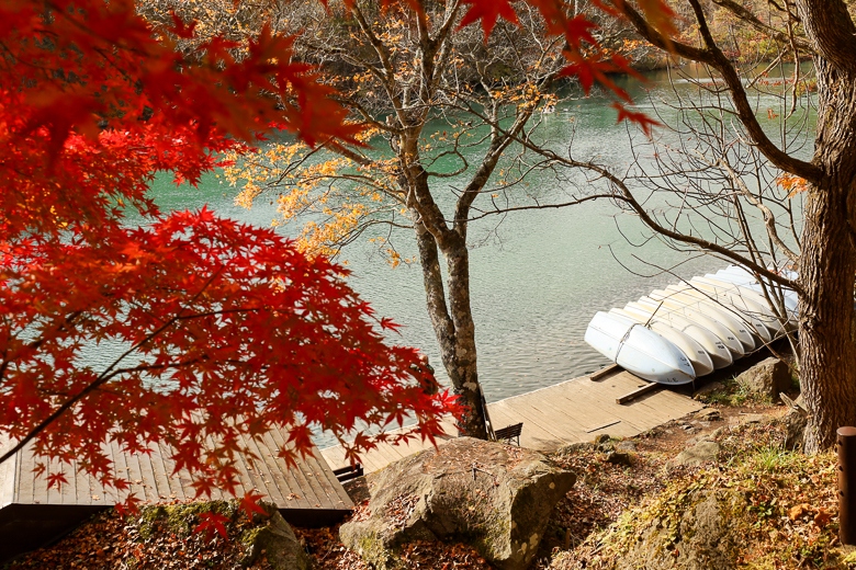 エメラルドグリーンと真っ赤なもみじのコラボは最高です。