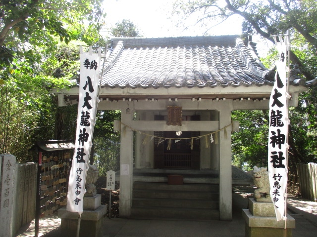 竹島の島全体が八百富神社の境内らしいのですが、そこにある神社です。この神社のそばからは、三河湾の絶景が望めます。神社の白い鳥居と三河湾の絶景は、いいコンビネーションですね。日本のエーゲ海というネイミングでいいかな?