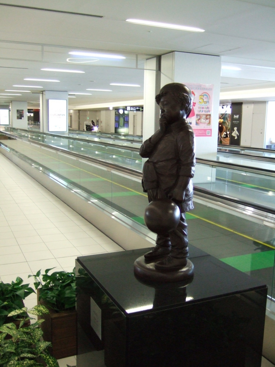 特に国内線ターミナルから国際線に向かう2階の通路は幅が広く、動く歩道もありますが、その途中にたくさんのブロンズ像が展示されています。タイトルと作者名の銘板はありますが、解説もあるともっと鑑賞しやすいと思いました。