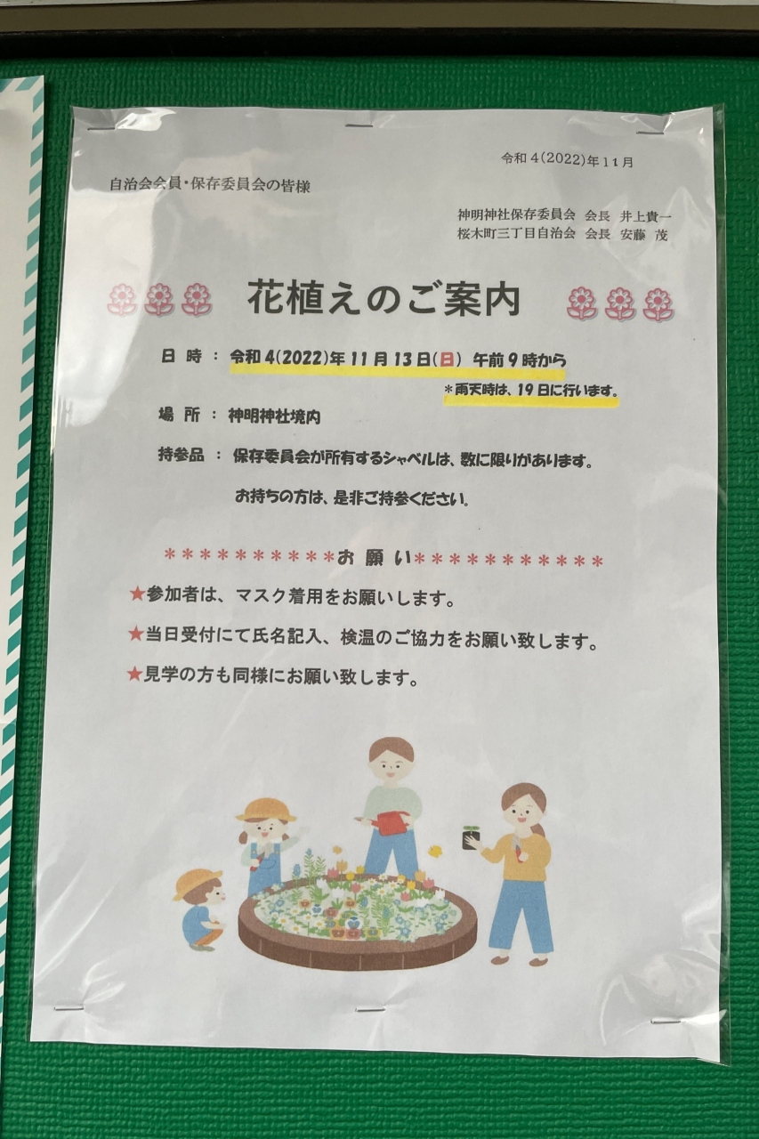 傷んだ部分が補修されていました。11月13日に神社内で花植えのイベントが行われます。