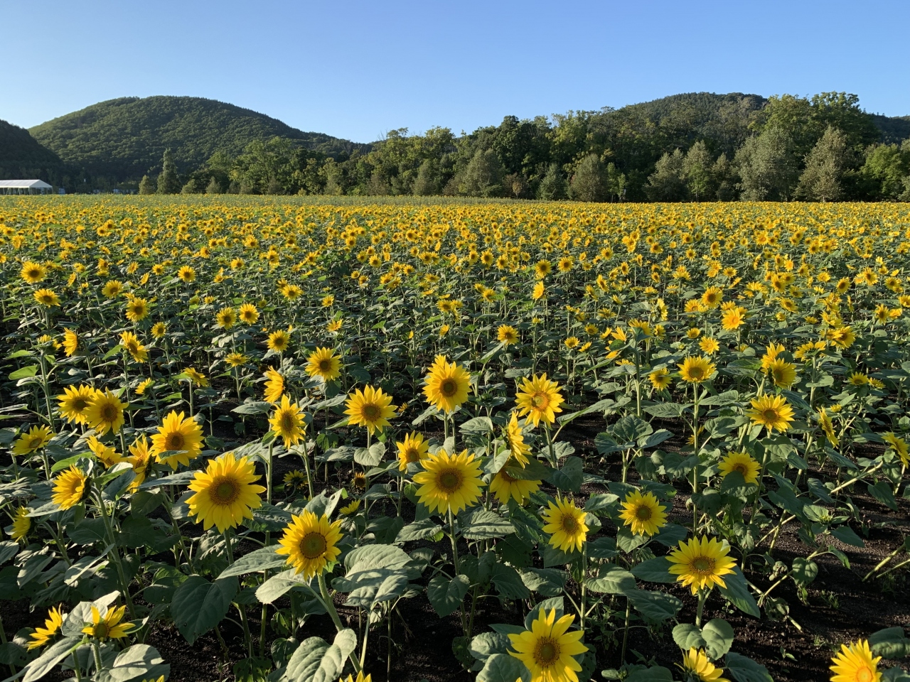 9月下旬に開催される網走マラソンのゴール地点になっていてその時期に合わせてひまわりを咲かせている聞いたので開催日の少し前に行ってみたらひまわり畑の手前に広大なコスモス畑がありこちらも満開。