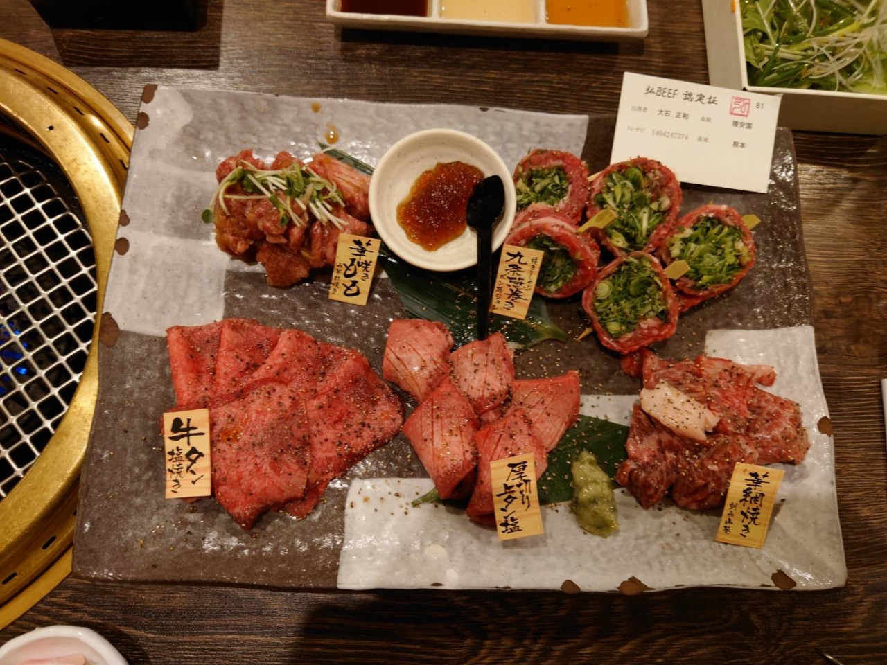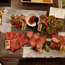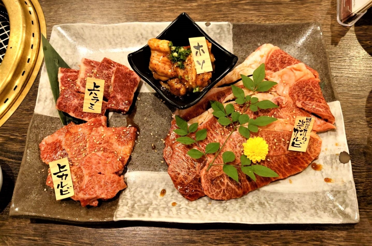 天然温泉蓮花の湯御宿野乃京都七条に宿泊したので近くにある焼肉で検索したところ美味しいと評価が高かったので予約しました。京都らしいお洒落な焼き肉屋さんです。コース料理で予約しました。お肉の部位の説明プレートが付いていました。大人数で予約しましたが十分な広さがあり良かったです。