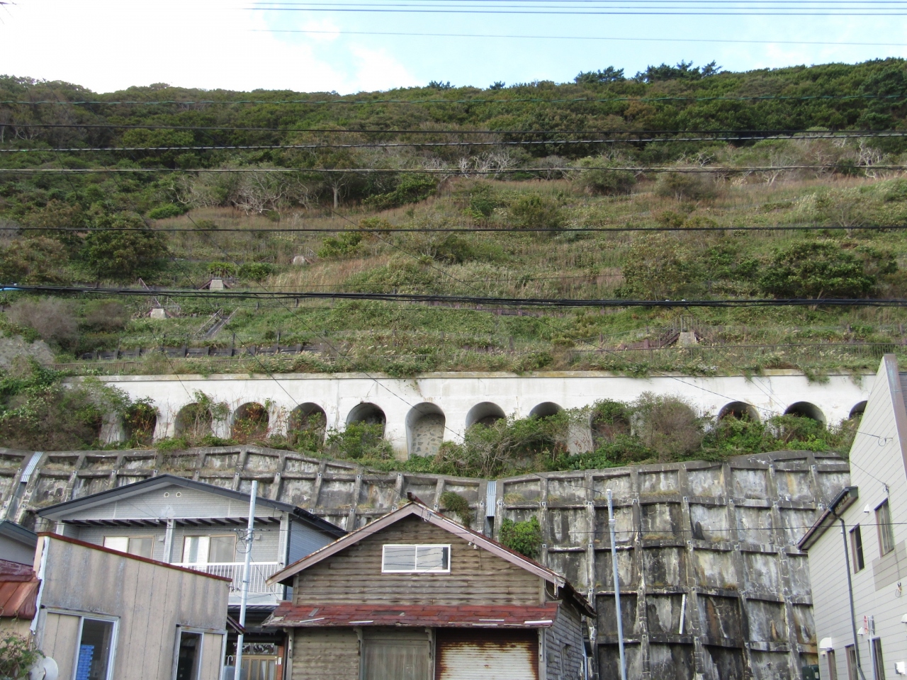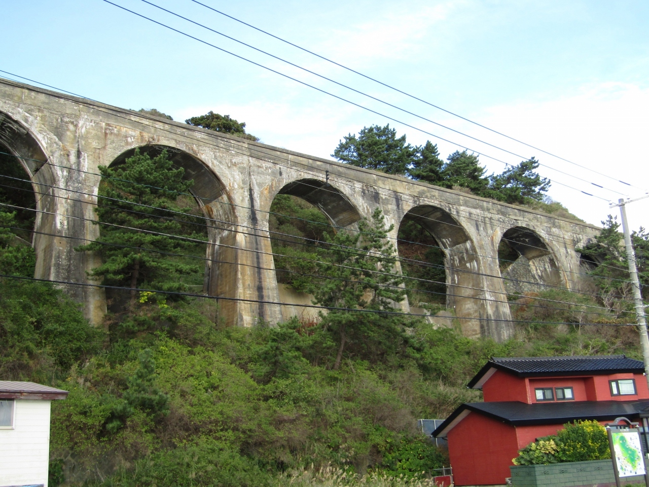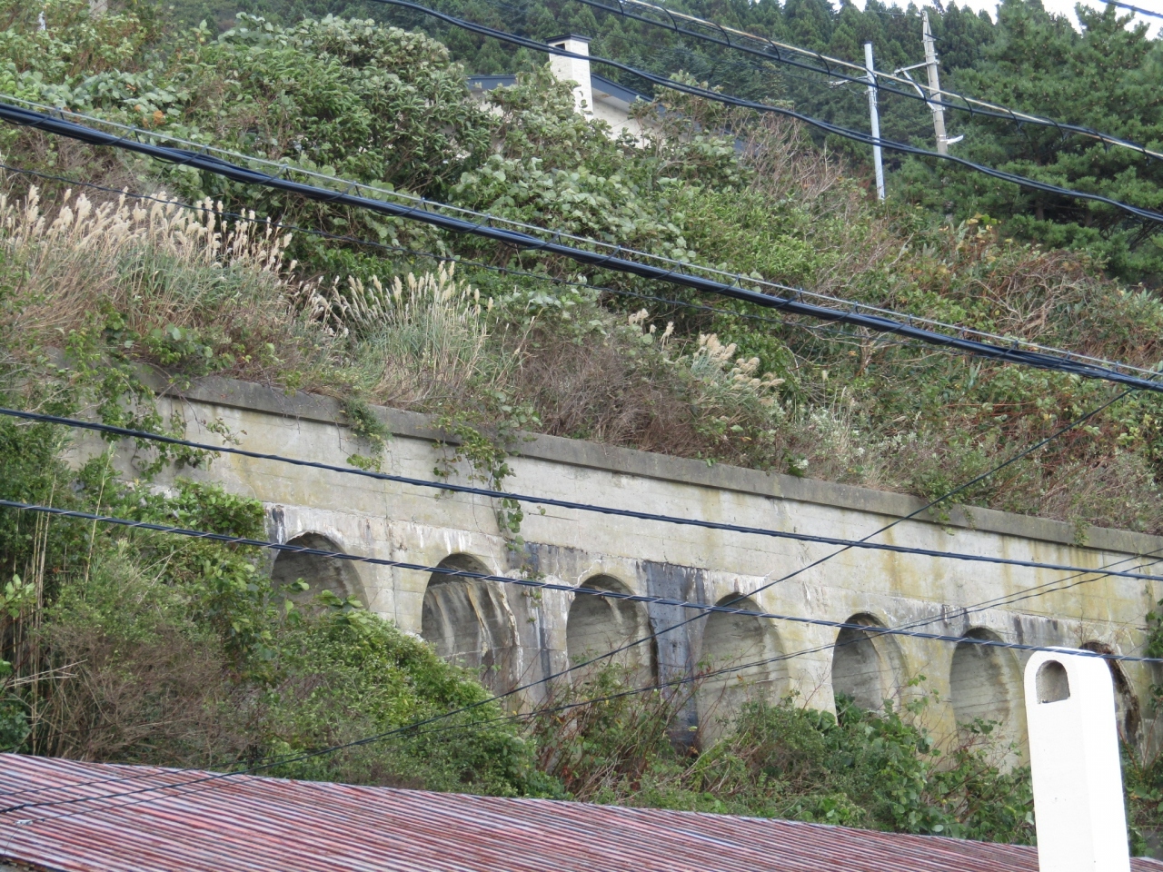 戸井線跡はあちこちに残されていて、アーチ橋は汐首灯台下が有名ですが、小規模なものは他にもあり、並行する国道278号線沿いから見ることができます。