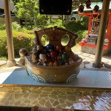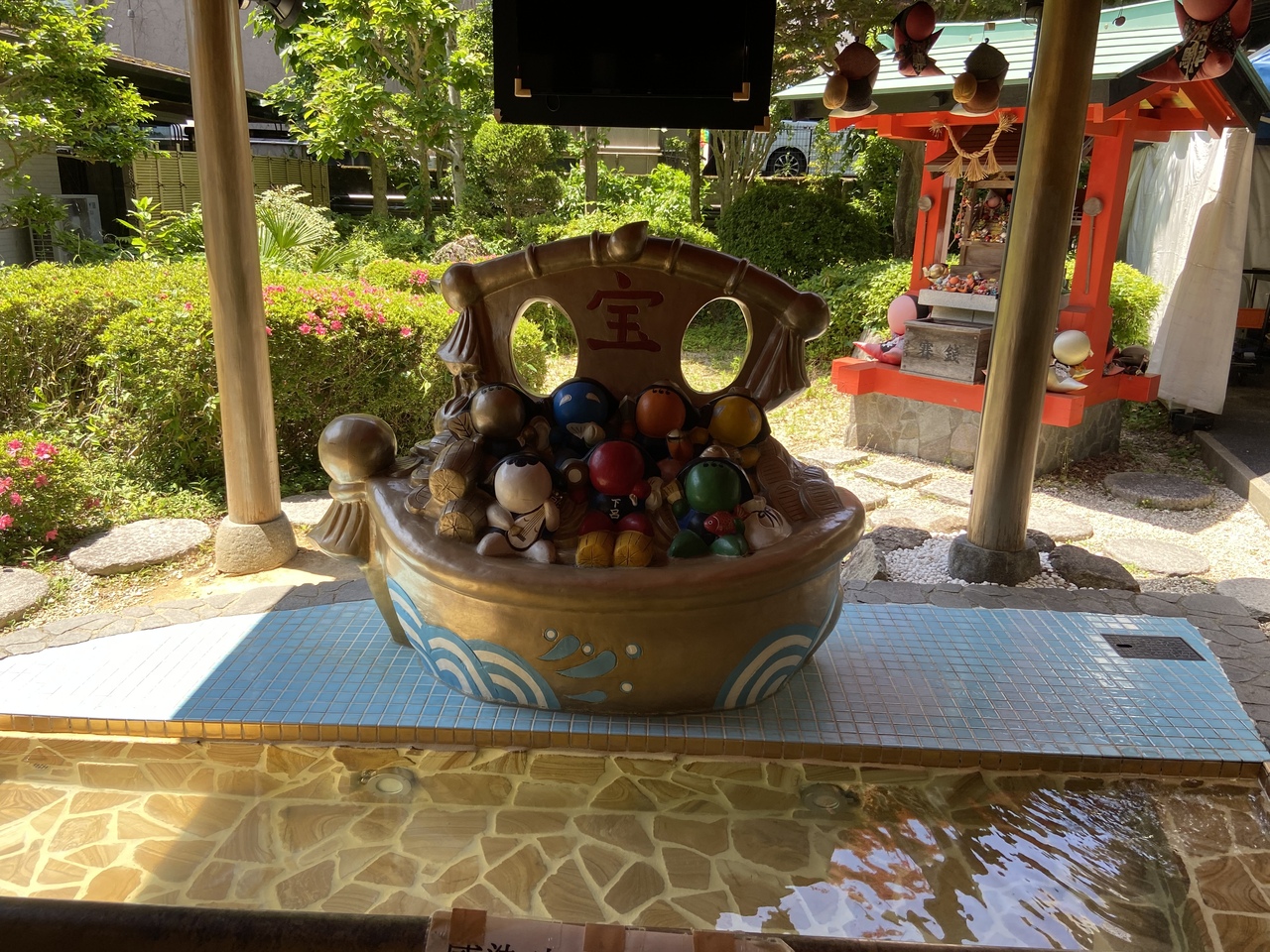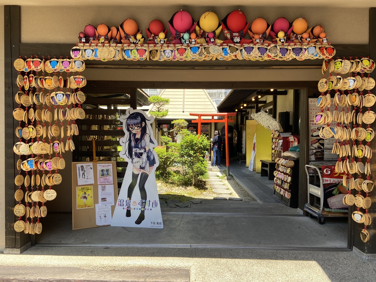 下呂大橋からまっすぐ阿多野通りの坂道を上るとカラフルで可愛いさるぼぼ人形が目に入ります。こちらには無料の足湯があり、こちらで入る予定でしたが、休日のため家族連れで混んでいました。足湯は小さめなので子供たちが入って遊ぶのにちょうどいいようです。平日なら入ることもできそうです。