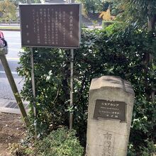 皇居の周囲にある内堀通りの大手門の前に説明看板と石碑が立っています。