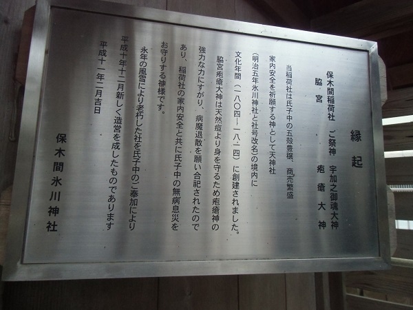 保間木稲荷、疱瘡神社、天宇須女命、榛名神社。