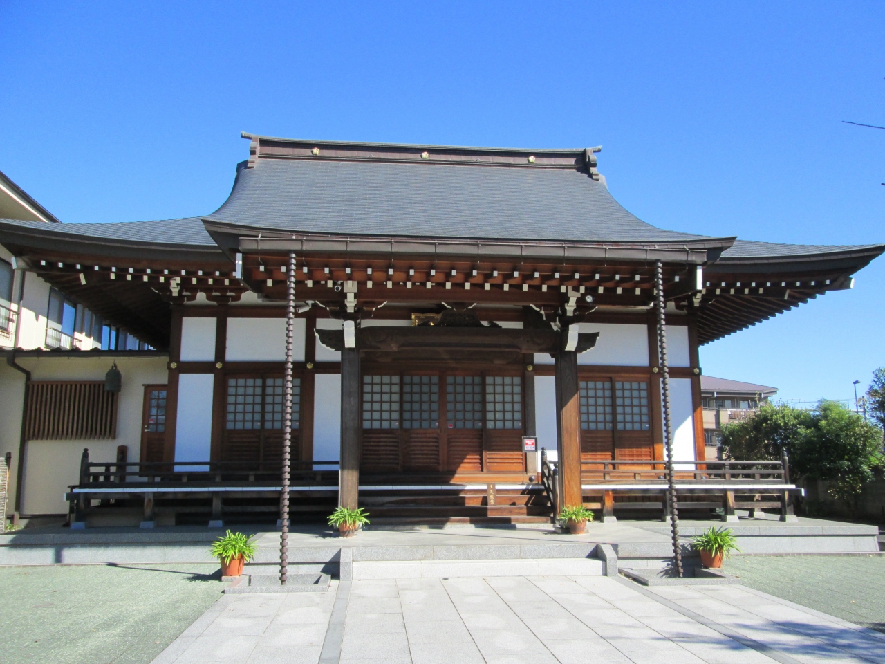 真言宗智山派の一寺、創建年代は不詳、僧覚心が1605年中興開山、本尊は大日如来像です。山門から入ると、正面に本堂、その他地蔵尊が二体、保護登録樹イチョウ、石造十三重塔等があります。庭木が刈り込まれ整備されているのと、大きな保護登録樹イチョウが目を惹く以外特徴のない寺院でした